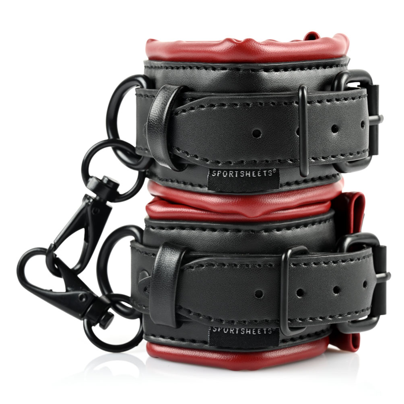 - 4 faux leather cuffs with buckle closure and snap hook connector