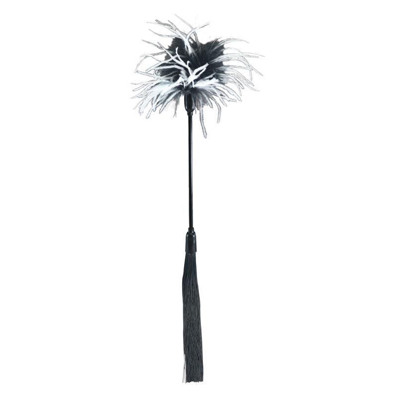 A flirtatious foray into dangerous territory... Tickle, tease and tempt their flesh towards desperate arousal. Caress every curve into complacency... then spank it into submission with this devious dual-action whip and tickler. Your lover will be begging for your touch as the delicate feathers and stinging silicone threads take them to the edge. The perfect balance of soft and striking, this implement of delight plays well with your favorite lingerie or a set of cuffs - and even comes complete with a guide of playful activities to tickle your partners fancy with.